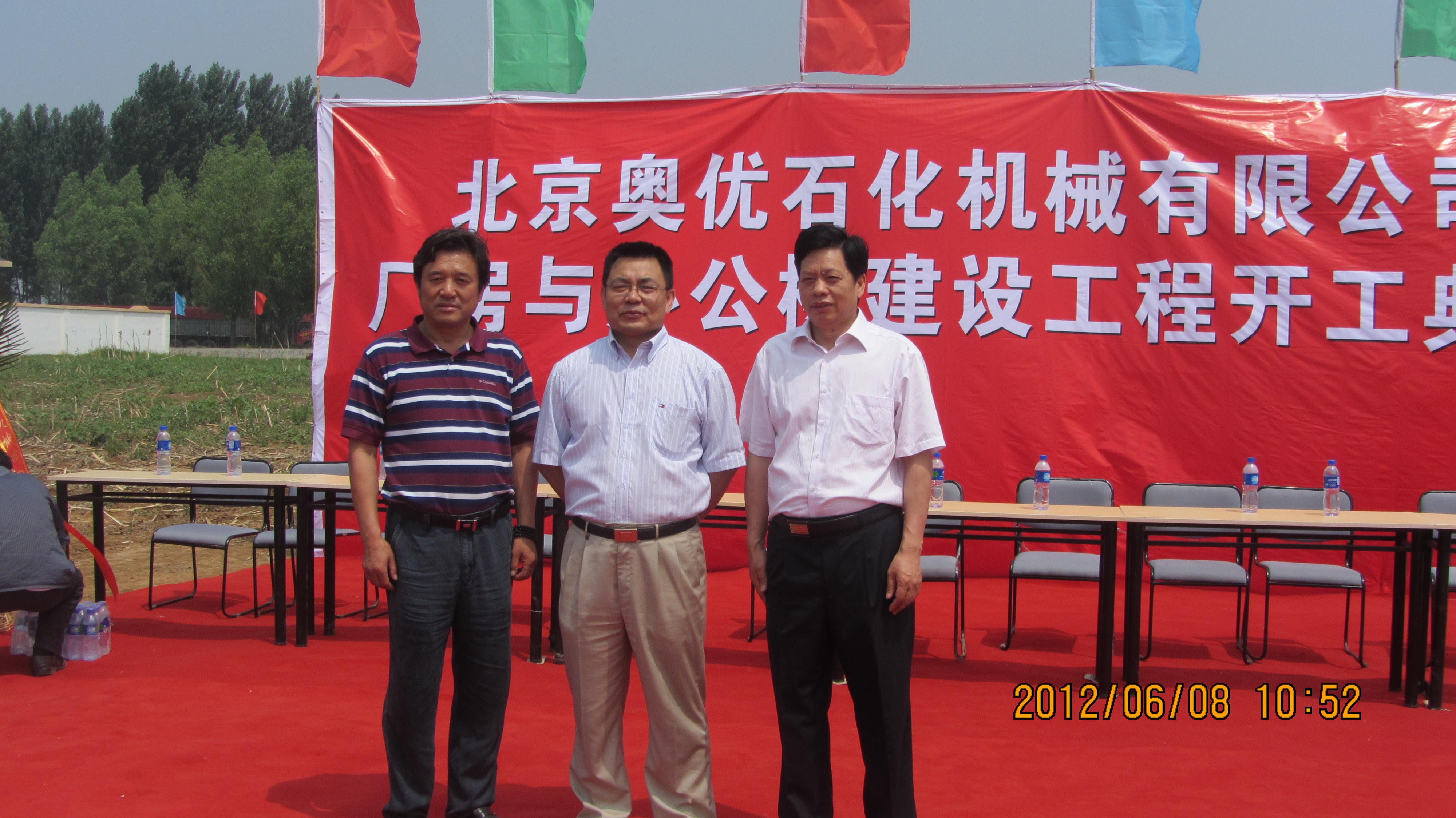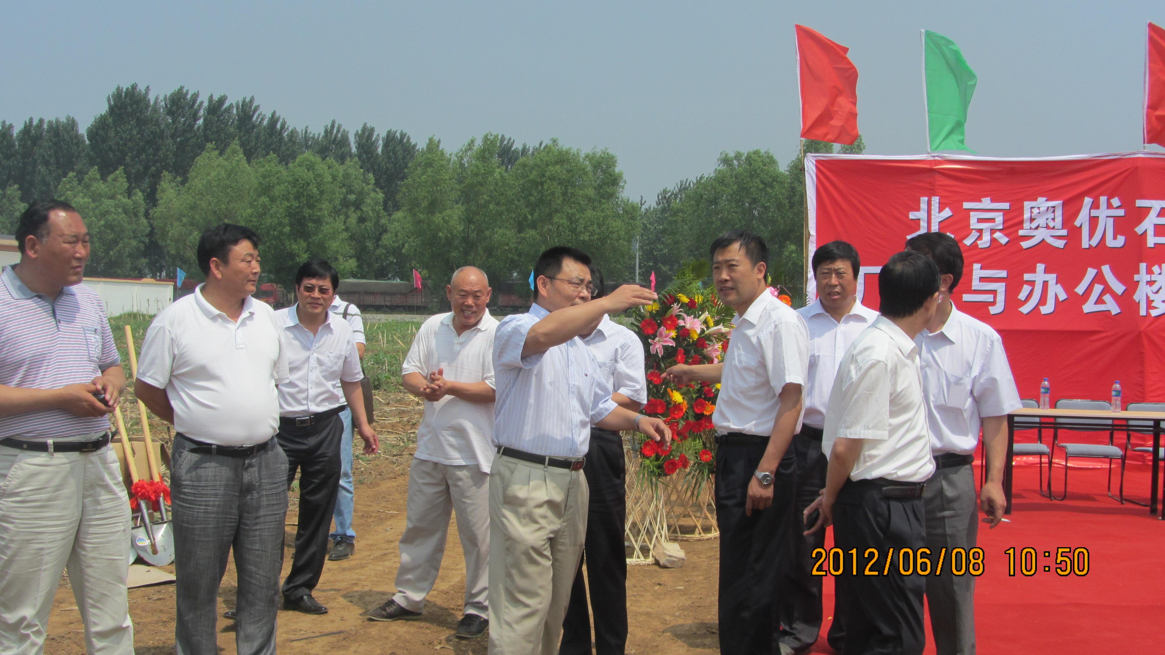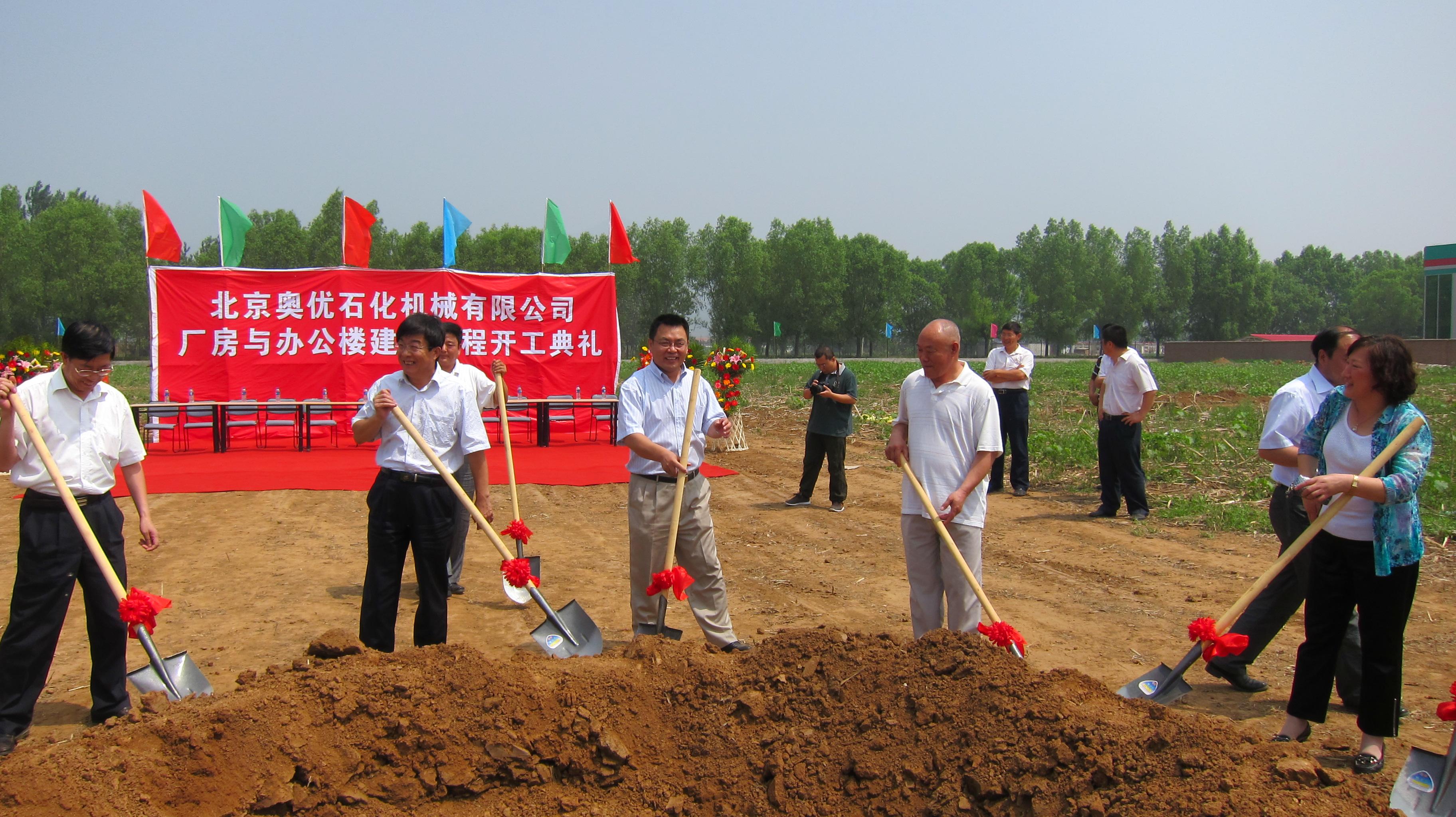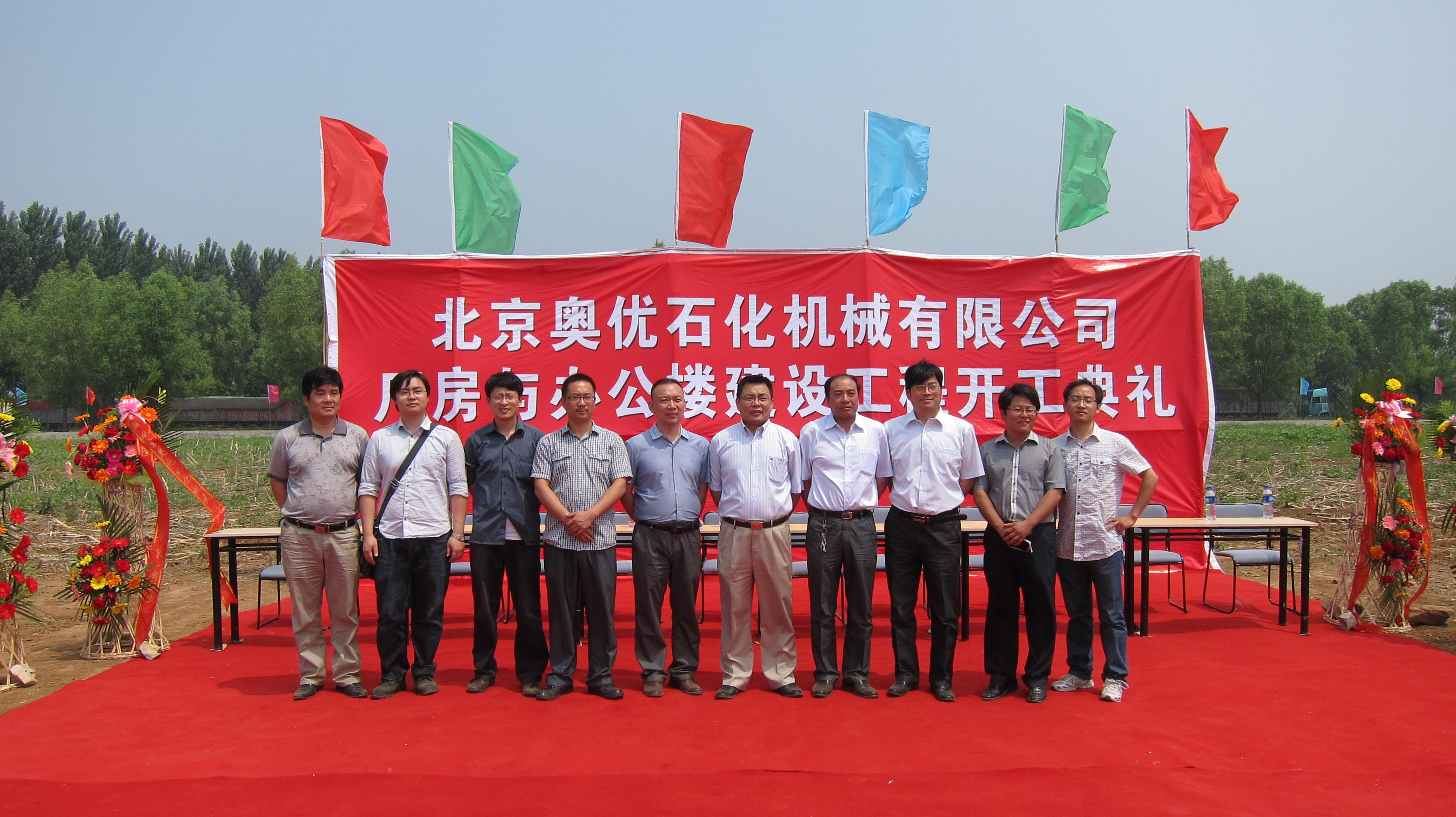 2012年6月8日上午,北京奧優石化機械有限公司新廠房和辦公樓建設工程開工奠基儀式在北京市平谷區興谷開發區舉行。北京奧優石化機械有限公司董事長武戰略、廠長張鳳忠、開發區陳艷明書記、張術明副主任、陳黎明主席、趙麗明副主任、張秋林副主任、胡國興副主任、平谷區招商局張慶江副局長等相關領導出席了奠基儀式,儀式由北京奧優石化機械有限公司副總經理陳亮主持。