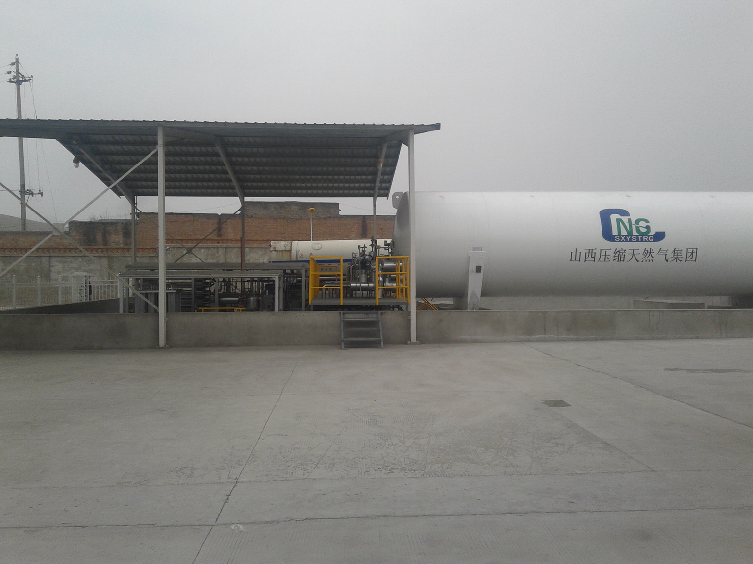 1、 基地式LNG加注站,此類加注站LNG低溫儲罐、工藝部分、加液機部分、站控分開布置。此類加液站占地面積大,審批建設周期長,造價較高,相對比較規范。
